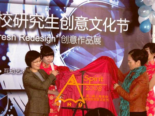 从“中国制造”到“中国设计”是现代社会发展关注的热点问题,本届创意文化节充分发挥各校研究生在艺术和经济管理研究方面的特长,通过丰富新颖的活动,促进高校间艺术设计及创意产业领域的交流合作,同时也营造了浓厚的校园艺术文化气氛。华东理工大学学生代表王玮同学在发言中提到,此次创意文化节是延承传统并突破创新,为研究生发挥才情提供了一个很好的展示平台,创意文化节也成为各兄弟院校创意交流的文化载体。校研究生工作部部长、学生处处长林文伟老师为开幕式致词,她指出,创意文化节丰富了高校研究生的课余生活,推动了高校研究生的创新竞争意识。改革开放三十年,社会的发展对我们高校研究生来说是充满的机遇与挑战的,尽管中国的创意产业目前还处于起步阶段,但我们相信,以中国源远流长的历史与丰厚的文化底蕴为基础,只要我们努力向前、只要我们让思想变得宽广而不被拘束,我们的创意产业终会日臻成熟并走向世界。最后,研究生工作部部长林文伟老师、服装学院院长李柯玲老师共同为本活动揭幕,在响亮的礼炮声中,第二届上海高校研究生创意文化节正式开幕!