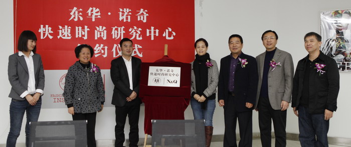 签约仪式后李柯玲院长和丁灿辉董事长共同为“东华·诺奇快速时尚研究中心”铜牌揭幕,标志着中心的正式落成并开始运行。