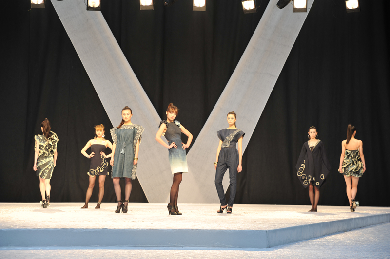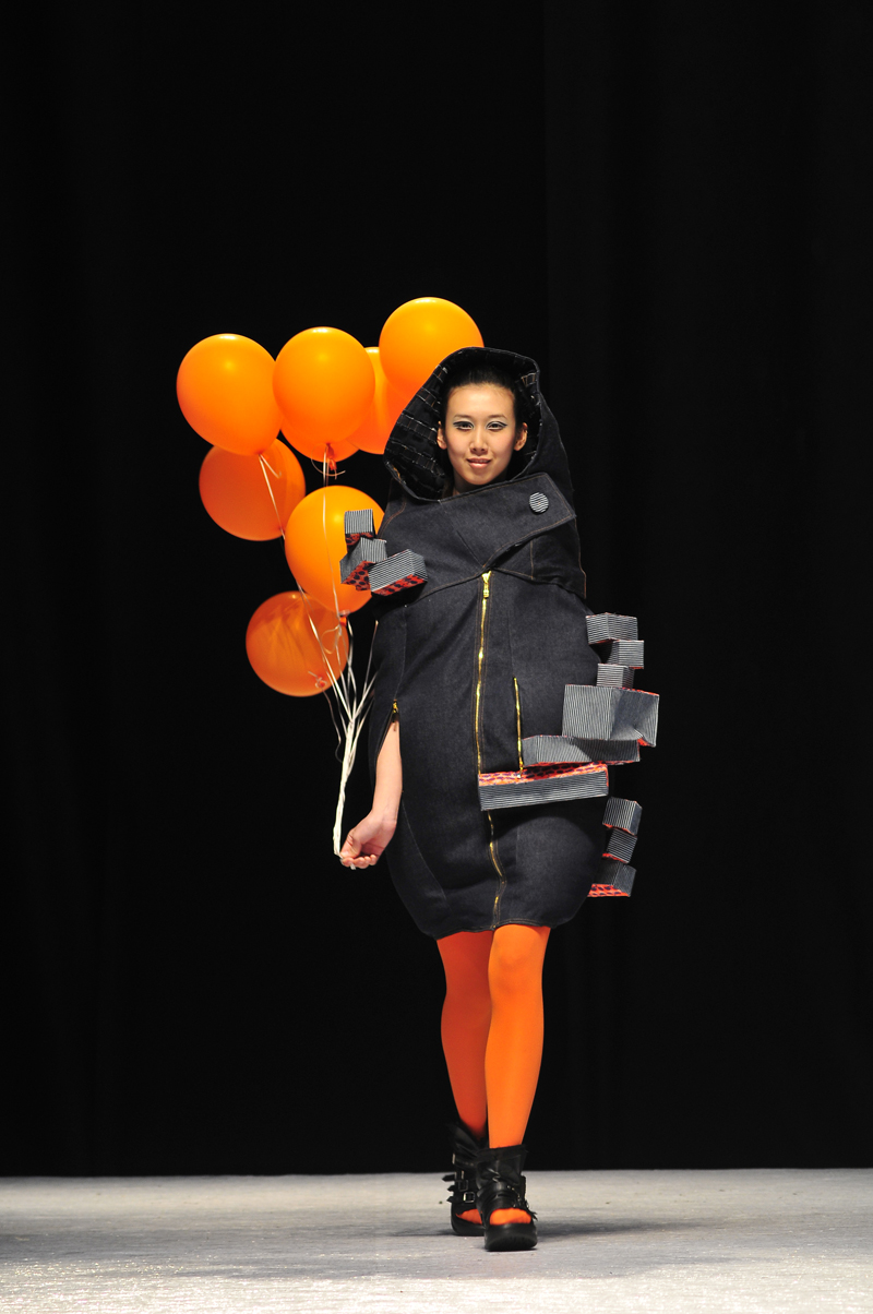 牛仔之韵,带给观众的惊喜层出不穷。抽丝、滚边、扎染、褪色,各种工艺搭配的恰当运用,赋予了牛仔新的生命。及膝的牛仔衣裙饰以披肩,经过喷漆处理的面料,给人古装的美感。夸张的灯笼型衣服设计,整个人包裹其中,展现了设计师天马行空的灵感。淡蓝牛仔配上白色的蓬蓬纱,甜美可人的小礼服裙带给人小小的清新之感。不论是适合日常穿着的设计,抑或是夸张的舞台装,充满创意的对牛仔的服装设计,打破了人们对牛仔适合做裤子的单一认识。