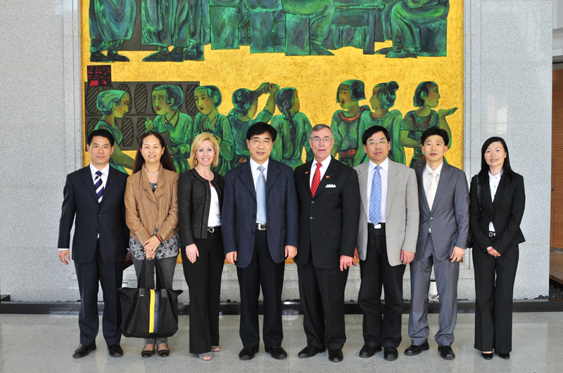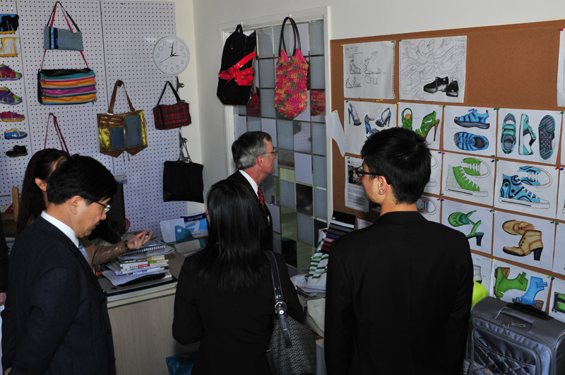 会见后,徐明稚校长等陪同美国爱荷华州立大学代表团参访了服装•艺术设计学院的教学科研成果和设施。