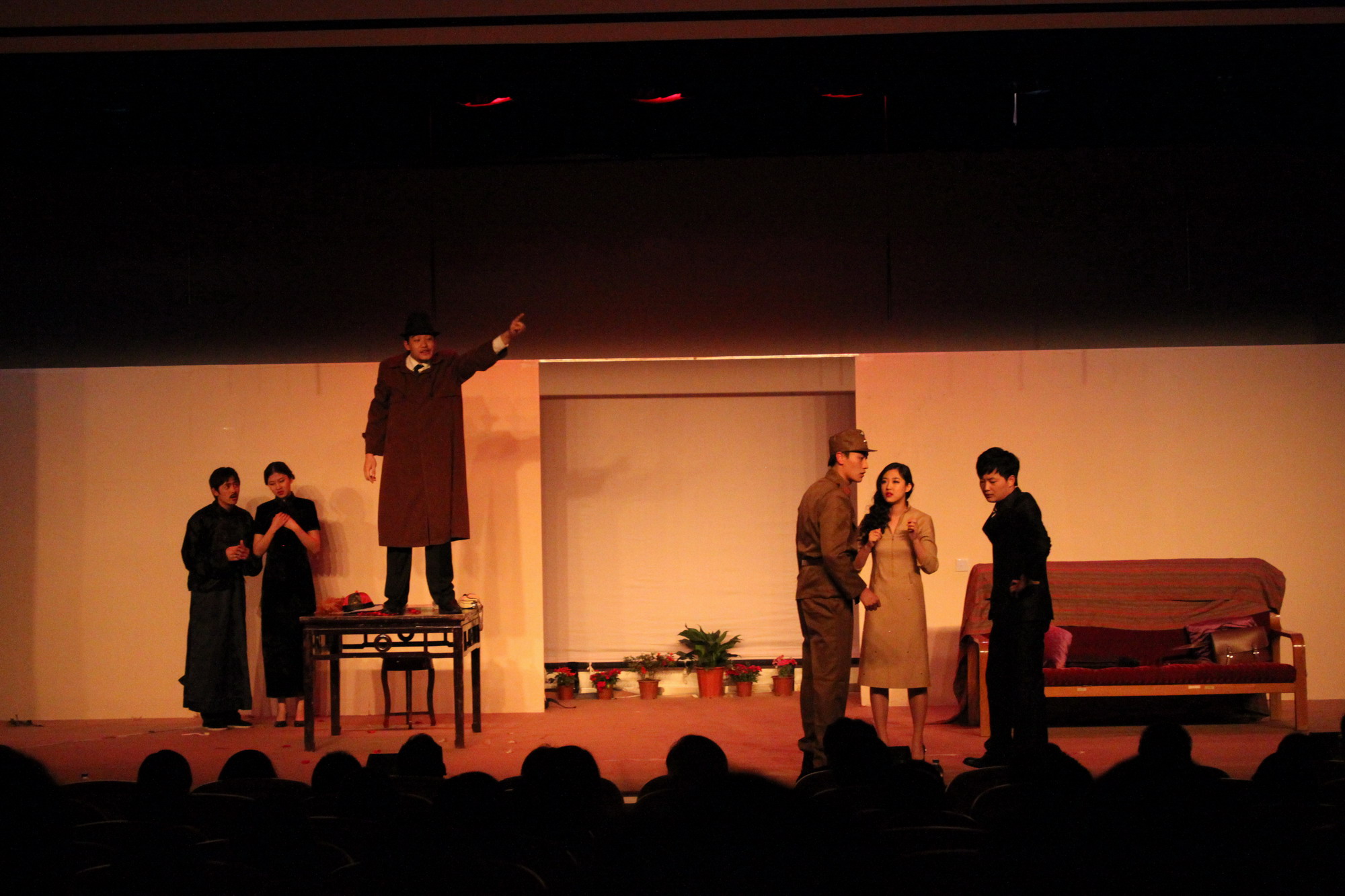 在热烈的掌声中,第三幕《群猴》徐徐拉开帷幕。作为一部带有讽刺幽默味道的轻型剧,演出一开场演员的精彩表现便搏得了观众们的掌声。