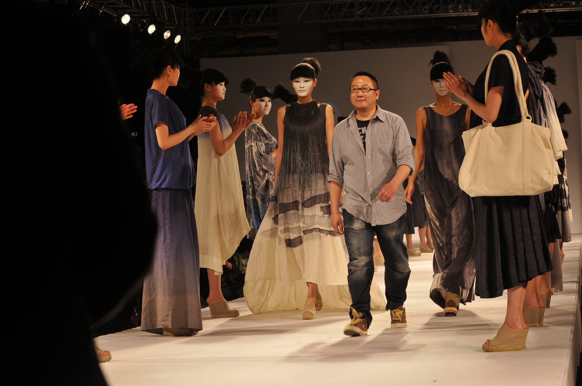 2012年4月21日晚上7:30分,在上海世贸商城四楼展贸中心大厅内一声空灵飘渺的女声吟唱中,2012上海国际服装文化节服装论坛暨“环东华时尚周”“弄影·水木”——中国十佳服装设计师罗竞杰专场发布会拉开了大幕,巨大的似木纹年轮又似水墨点染的舞台背景前,模特身着棉麻天然材质服装,精致的手工细节与水墨晕染的视觉效果,充分表现出本次发布会的主题:《五行-水木》。