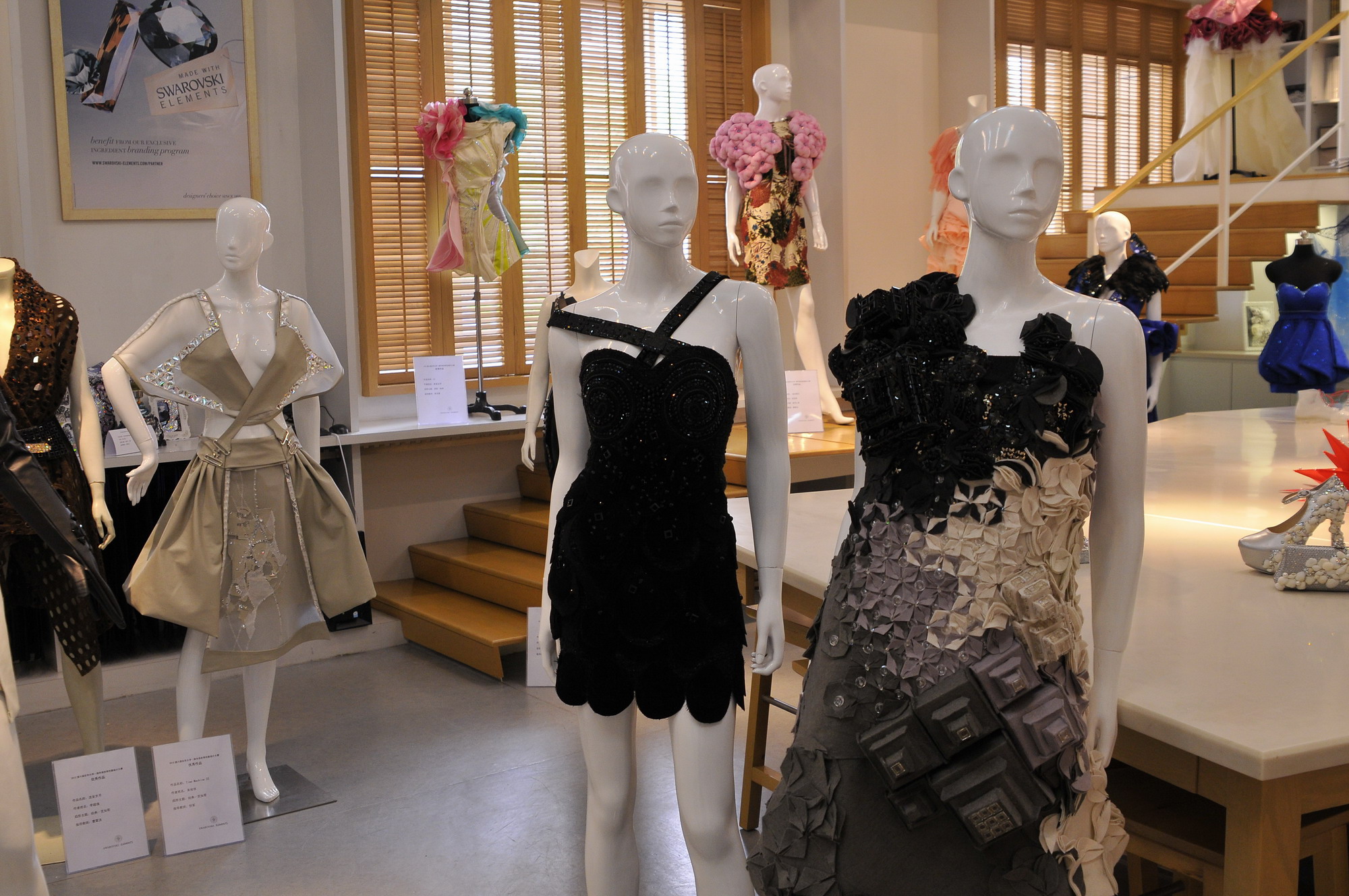 -施华洛世奇创意大赛,更有5位杰出的未来设计师冲出重围获得一等奖,得到前往施华洛世奇奥地利总部参观学习的机会,将自己的名字和设计作品记录到施华洛世奇元素这个具有传奇历史的世界知名奢侈品牌的发展历程中去。目前第六届创意设计大赛正如火如荼地进行中,本次大赛是围绕五大城市:芝加哥、柏林、上海、伊斯坦布尔、哥本哈根展开的设计,整个展区的作品约56件。同学们的作品或神秘、或简约、或典雅别致,可谓风格迥异繁多。但是都与施华洛世奇元素有着近乎完美的结合,令人目不暇接。