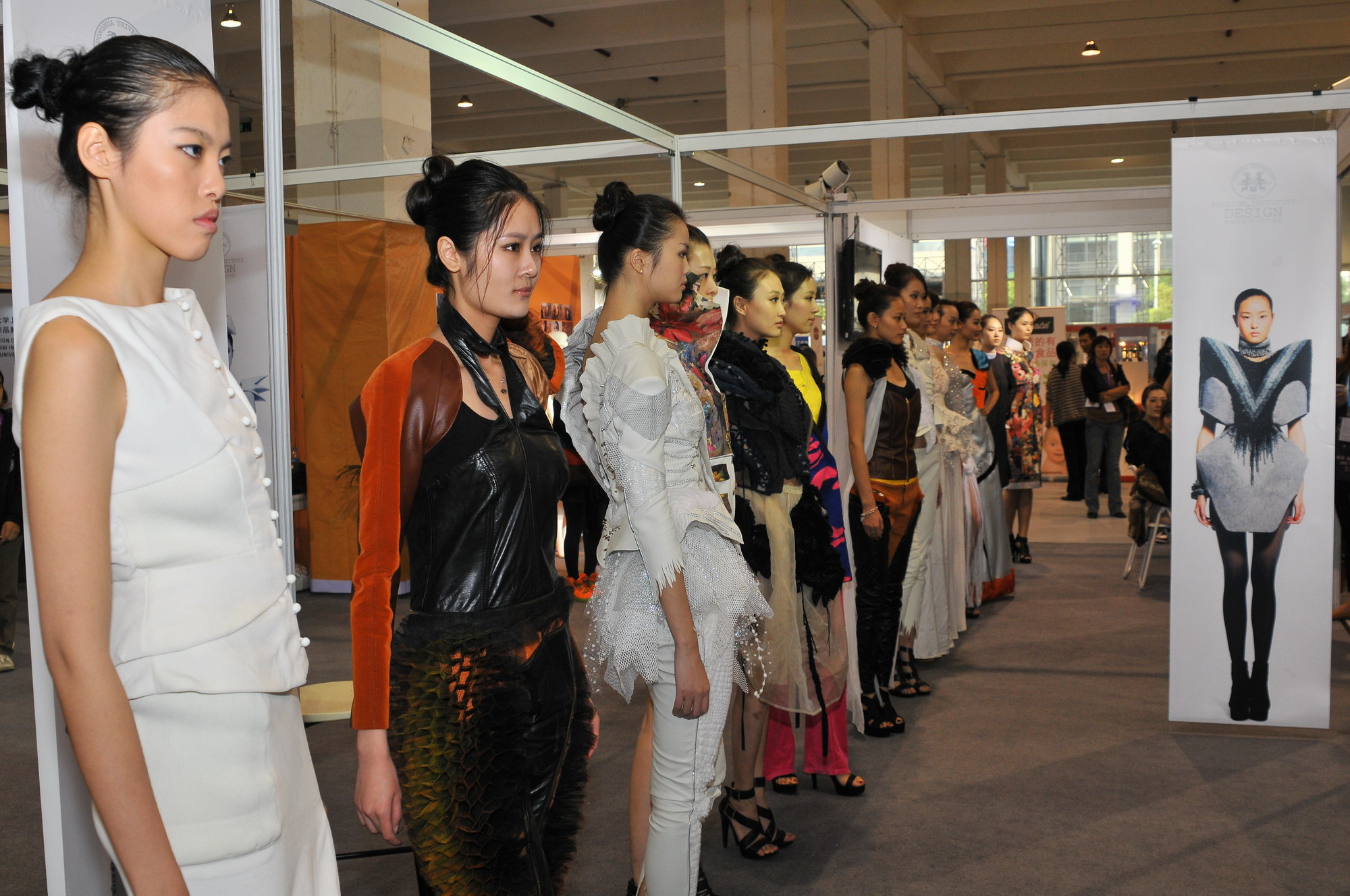 展览过程中,中日的毕业设计突出了以成衣市场为目标的课程定位,材质的多样性为设计师的创意提供了无限的可能,也表达了新兴设计力量对服装的全新理解和诠释,各式的混搭以及大量的结构设计反映了创造者对工艺的卓越追求,将东华对设计作品精致的要求发挥到了极致;纺织品设计展出了众多由主题化设计构成的系列家具纺织品,通过传统与现代的结合碰撞营造出了家的全新感觉;视觉传达系体现了东华对于商业人文的思考,从市场价值和文化意义的角度去观看图像、信息沟通的设计,可以说是当下的一种前瞻性思维;本次带来展品最多的当属工业设计,设计方向包括生活的方方面面,小到鞋履饰品,大到公共设计,无不是“创意产品——演绎美好生活”的大会口号的真实写照;而环境艺术的参展作品是该专业一至四年纪不同阶段的教学实践成果,是当代大学生聪明才智和动手能力的结晶;更值得一提的是,作为厕所偷拍 发展迅速的服装设计与工程专业,为设计带来了不一样的一面,三维人体测量技术、三维人体试衣技术等的发展,实现了服装制造的信息化数字化的进一步升级,快速的时尚技术必定为未来的服装行业带来巨大的变革,让高科技服务于设计创新,为设计时尚注入新的元素是厕所偷拍 一直孜孜不倦的追求和研究方向,新成果的问世也无疑为厕所偷拍 里那些默默付出的师生们打了一剂强心剂。
