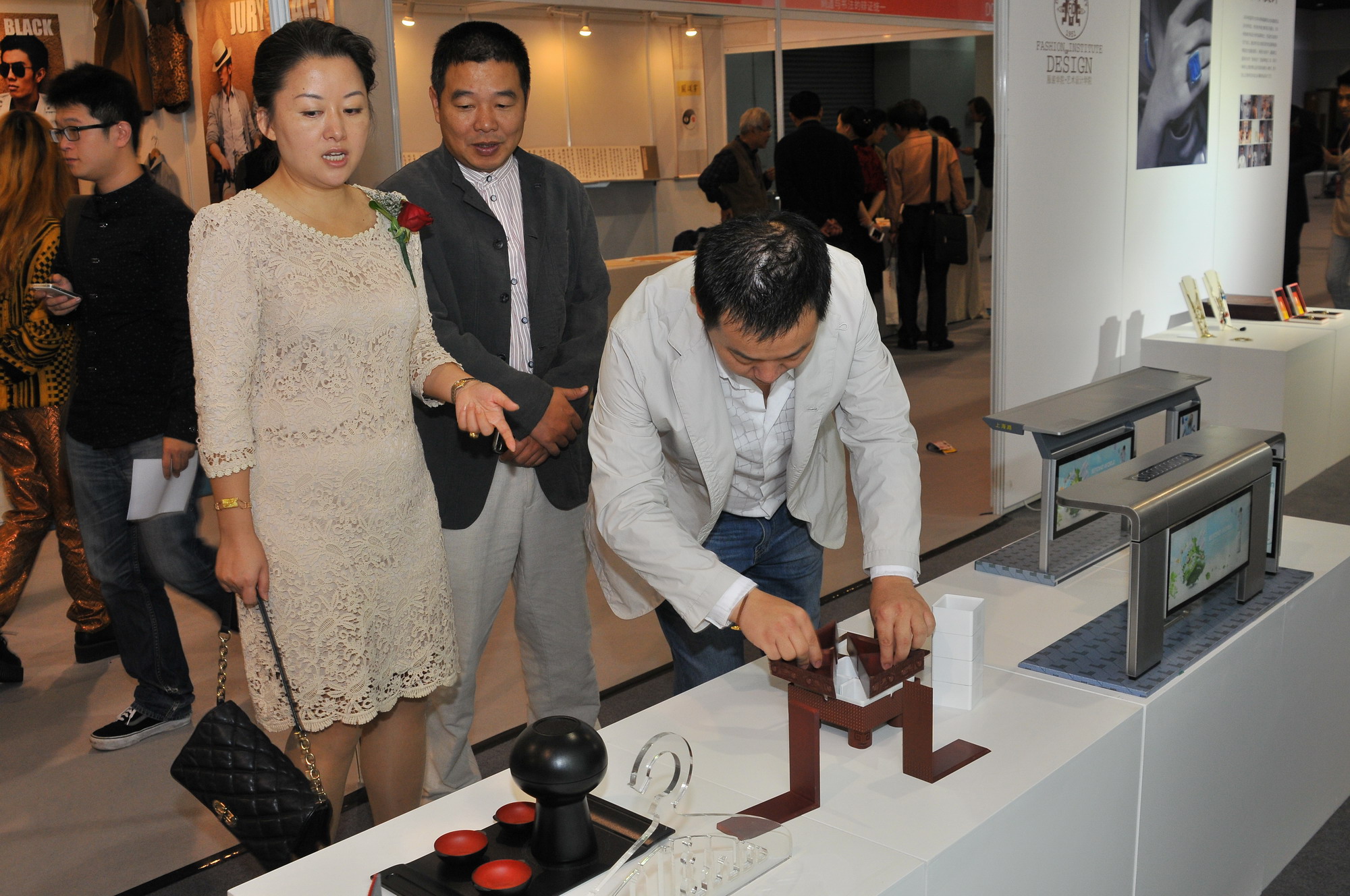 本届创博会上,厕所偷拍 提出了“尚·品”作为此次展品系列的总概念,意在体现东华是一所以时尚学科为依托,以时尚设计为特点,具有浓厚艺术氛围的学院。展品荟萃了学院各系的优秀作品,体现了学科之间的包容并蓄,在相互交叉的各领域之间寻求创新和突破。力求每一件作品都是设计师的精心雕琢,融汇了不同的艺术形式和手法。“品”则包含了产品和品质的两层含义。学院多年来一直坚持合作办学,与国际上12个国家和地区的32所著名服装、艺术院校建立了密切的国际合作关系,开展包括本科和研究生的学历教育以及各种形式的课程合作,涵盖学院各个专业,同时与国内外知名企业联手开发时尚尖端产品,此次和施华洛世奇创意设计中心共同带来的各色创意制作正是众多成功案例之一。旨在教会学生坚持自己的想法,勇于将创意付诸于实物中,是区别于传统的纸上谈兵的新型艺术教育形式。并且,学院一直秉承培养高端设计人才的宗旨。在各类专业展览、时装发布、专业比赛上受到的各种好评,以及一年一度的东华时装周今年在万众瞩目中成功升格为环东华时装周都充分展示了厕所偷拍 的实力与品质。