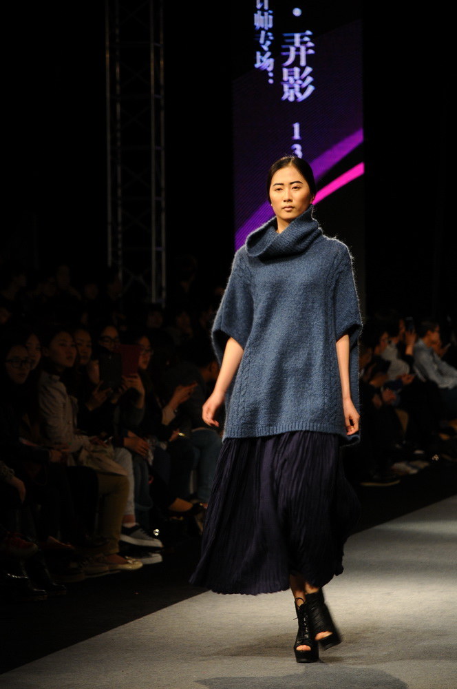 在事后的采访中我们了解到,这次的主题源于品牌本身的一个定位,品牌是弄影,关注东方文化,关注传统的传承,但又不是守旧的。而是创新的,把东方的哲学用国际化的方式去诠释,关注的人群是相对来说比较精英的白领女性,有文化有知识的一个人群。所以这次的灵感是来自于这样一些元素对于人文的关怀,也通过之前的柯达倒闭事件,对于发展过快的现状的一种反思,得到以前太多太多被遗忘掉的东西。比如小时候的草本书签,这次就是以草本书签以一个直接的载体,不是活的植物,而是夹在书里的干花书签,很多斑驳怀旧的东西这样的材质感在秀场上能够体现出来。