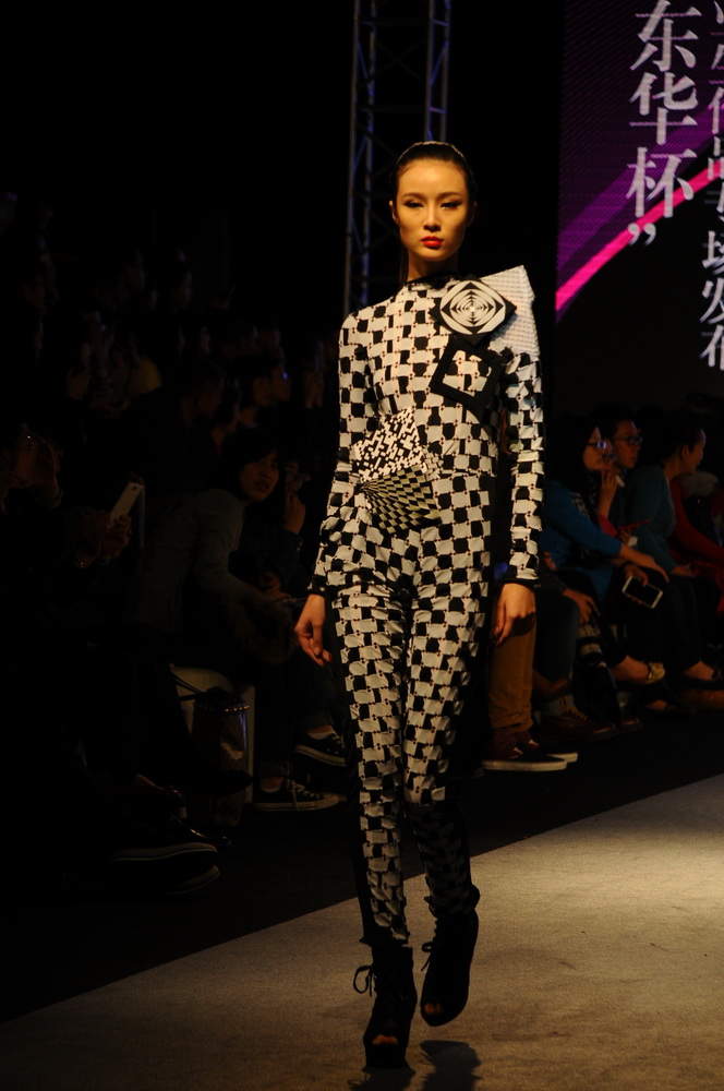 最先登场的是几套以藕色为主要基调的服装,通过刺绣的点缀将陶瓷莲藕与服饰融合在一起,同设计到装饰的细节都体现莲藕所特有的出淤泥而不染的纯澈之美。紧接着几套印花服饰的登场一扫之前的朴素,通过大面积色块的拼接和面料的组合,让人眼前一亮,甚至有人将梵高的名作搬上服饰,将服饰与艺术的结合展现在观众眼前。有人拿色彩做变化,也有人在结构上大费周章,各种高难度有新意的剪裁让我们不禁感慨这些新锐设计师的精湛技术和独特创意,随后的几套中世纪宫廷风格的服饰也在现场引起了剧烈的反响,绚丽的色彩,精致的面料,合体的裁剪将贵族的那种精致表现得淋漓尽致,却又隐约透露着继续颓废的色彩,剧烈的冲突紧紧抓住的现场的眼球。而冠军许唯的名为“波”的作品的出现,无疑整场秀推向了高潮,不同结构及素材的运用,表现着不同的情绪——灵感、思索、犹豫、反复、纠结•••这个过程就好比是海上起伏的波纹,在观众心底也激起了阵阵涟漪,仿佛也是设计者在告诉自己,无论设计的道路如何起起落落,都如大海上的波纹一样稀疏平常,不要为此而放弃自己的理想。