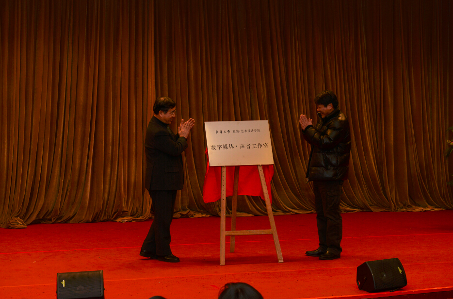 副校长刘春红、上海话剧艺术中心艺术总监吕凉、上海音乐学院音乐戏剧系系主任赵光教授,音乐工程系主任陈强斌教授分别致辞。在致辞中,刘春红副校长提出,在学校以纺织科学为主体、材料学和设计学为两翼的战略规划下,学校注重培养高层次、应用型、国际化的专业人才,数字媒体•声音工作室的揭牌,是设计学对接社会需求、产学研结合的重要实践,这也是企业对高校人才培养的重要支持。陈强斌教授提出,工作室的成立,是一种新的艺术方式的探索,也是融合与跨界的创新,一定能够为产学研结合做出相应贡献。
