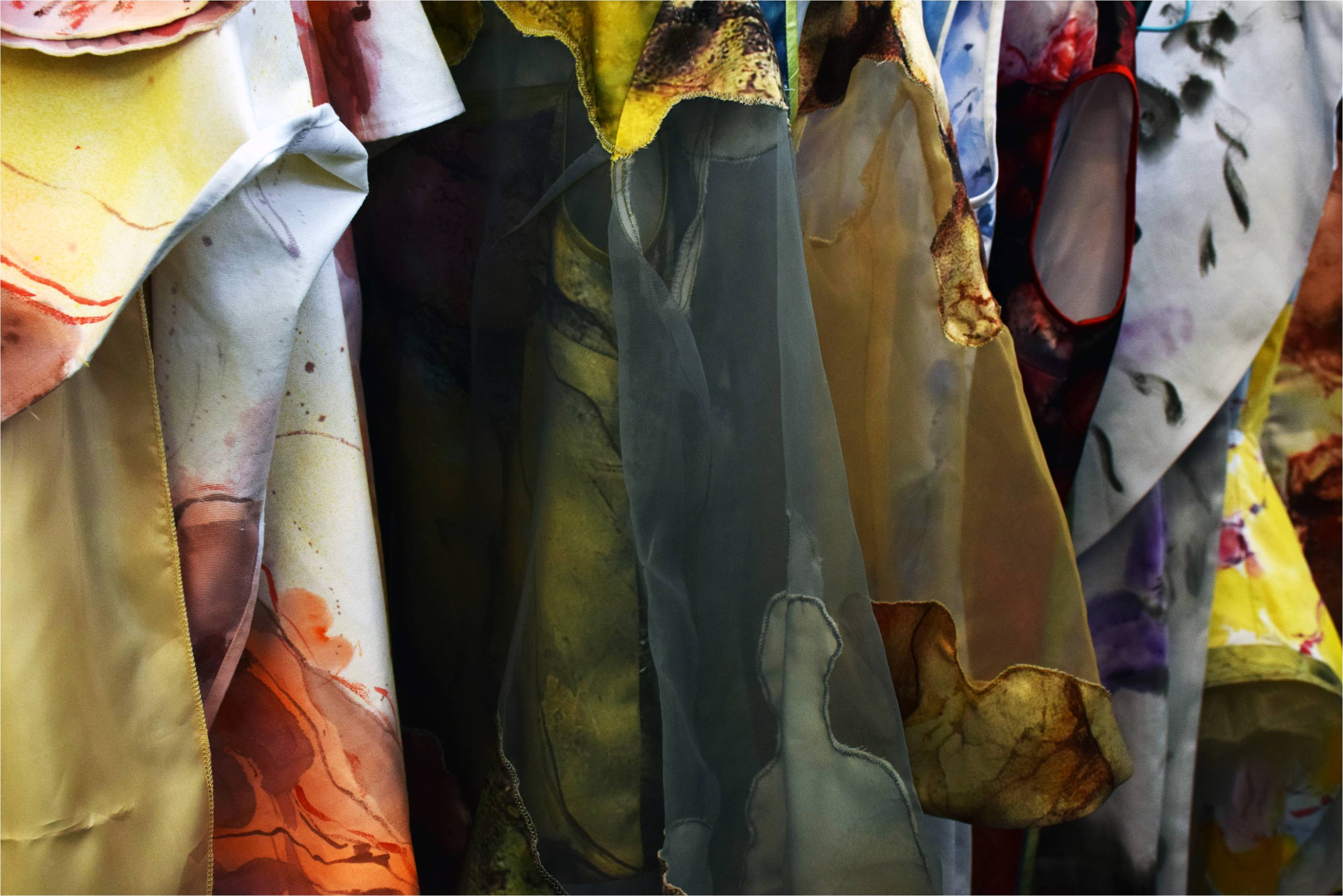 服装设计是解决人们穿着生活体系中诸问题的富有创造性的设计及创作行为,是艺术设计的一种表达手段。绘画尤其是抽象绘画用其强烈的视觉符号、不断创新引导,对艺术设计领域的图案、形态、材料、观念产生巨大影响。服装设计与现代绘画相碰撞,融合多种元素后创造性的诞生了今天展演的“艺术品”。