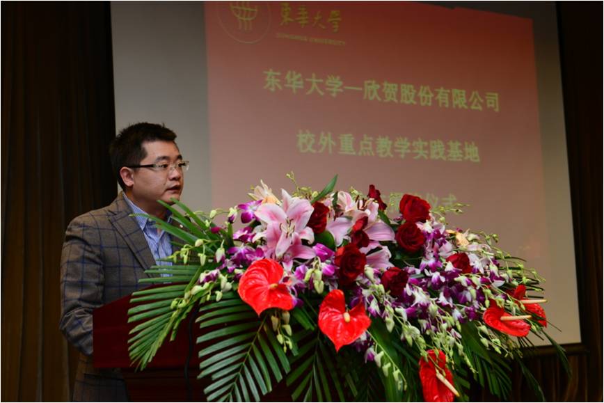 服装与艺术学院院长李俊教授、副院长李敏教授、欣贺股份有限公司总裁罗永晖先生、人力资源总监宋晓芃女士出席了仪式,仪式由服装与艺术学院副院长李敏教授主持。