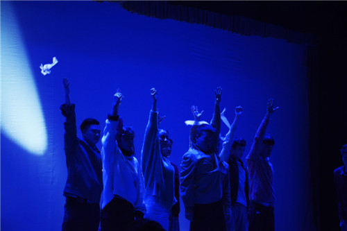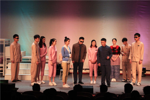 特别是4月21日晚,艺林盲人按摩中心的部分盲人推拿师也亲临了演出现场。在话剧排演期间,他们曾给予师生大力支持,他们的心与舞台上的演员紧紧连在一起。虽然他们不能完整的看见演出,但是他们一定可以用“心”读懂演职员们以及观众的赤诚之心。