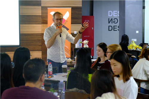 最后是来自鹿特丹大学的Wilco老师围绕Wearable Design为主题的演讲,主要阐述了生态设计中的设计方法与原则,同时对人——事——数据之间相互作用的过程进行分析以及人体穿戴分析并与现场同学展开了积极讨论。在Bartel老师与Wilco老师的共同主持中展开了头脑风暴。