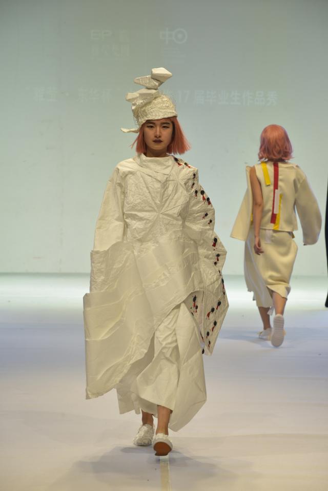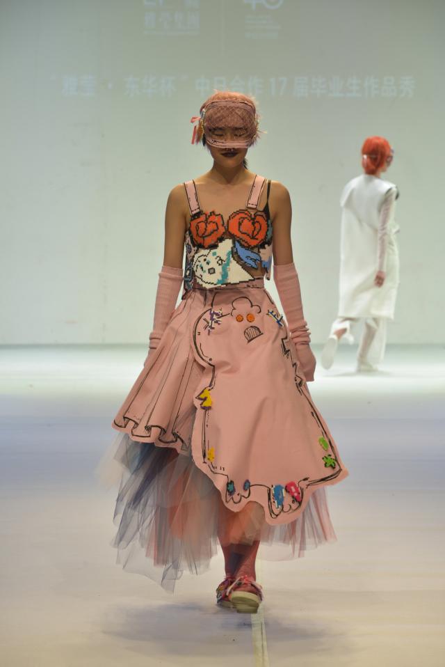 2017届学生是中日合作班第11届毕业生。“3+1”的联合培养模式,带给中日合作班学生的不仅有出色的设计创作能力与制版制衣技术,更有国际化的视野和理念。这些作品均为他们在日本文化服装学院交流学习时期制作完成,这群年轻的设计师怀揣着对服装设计独到的理解与感悟,将设计思考、生活经历与文化态度融入作品中,风格鲜明,各具特色,体现了中日合作专业融创新性、时尚性、技术性于一体的办学理念,呈现了一场精彩纷呈的毕业秀。