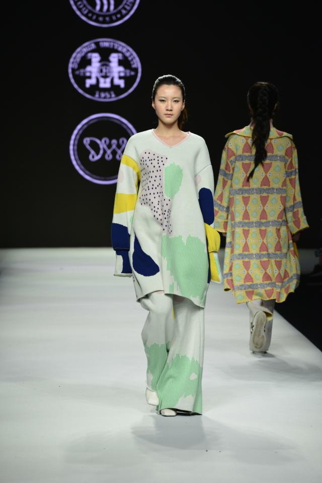 师生团队通过深入生产第一线,了解一针一线所织造的无限可能,将挥毫泼墨的灵感融入实践,将天马行空的创意结合适穿。从纱线开始就赋予作品与众不同的生命内涵,丝丝入微中体现针织作品的严谨态度,线线入心中体现手作佳品的虔诚和敬意。从认识纱线、针织机器、到织片小样,再到发布会上完美呈现的作品。在纱与纱的勾连交错之间,一次又一次视觉创新和碰撞得以实现。在创新开放的课堂上,师生们乐此不疲地沉浸于原创设计作品的演绎之中,设计出一件件独具匠心富有创意且具有市场潜力的作品,呈现出校企合作课程的无限活力。