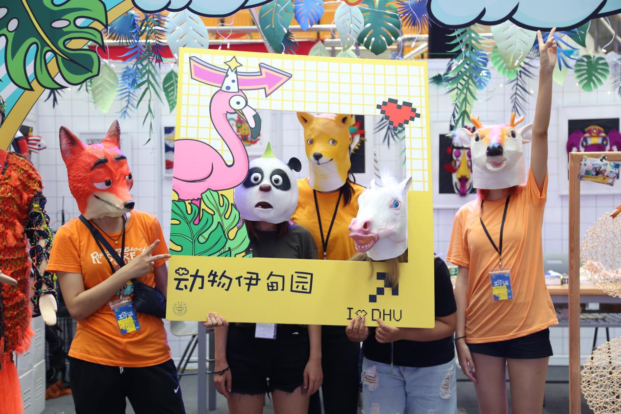 展演现场有很多动物的头盔,可以供大家佩戴拍照,并现场免费打印照片,增加互动性的体验。