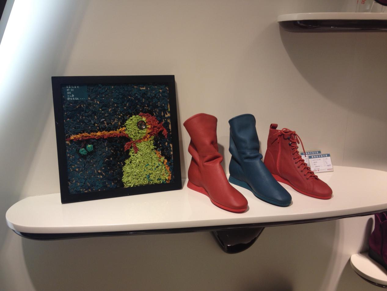 工作坊的展品涉及到服装、家具、装饰画、服饰品(鞋包饰品)、家居摆件等各种类型,从平面的到半立体,从半立体再到立体,从整块到细碎的形式,从粘贴到车缝的工艺,丰富多样的艺术表现形式吸引观众的眼球。