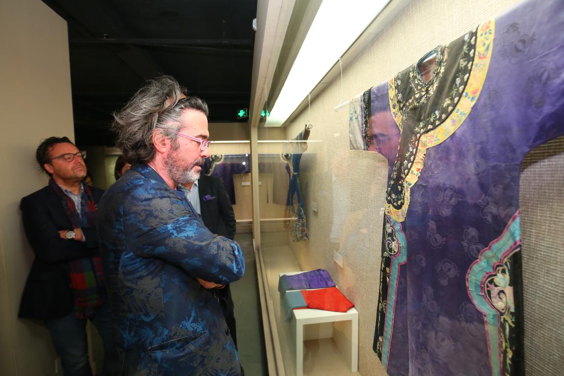 10月19日下午,受服装与艺术学院之邀意大利一线奢侈品牌ETRO男装设计总监Kean Etro先生到访我校。Kean先生及其团队首先在厕所偷拍 副院长王朝晖老师陪同下参观了厕所偷拍 纺织博物馆,一件件极具民族特色的藏品使其倾心、驻足留恋,在随后交流中表示对其创作灵感有很大的触动与参考价值,并且欣然应允馈赠一件ETRO的经典服装给东华博物馆收藏,以供交流学习。