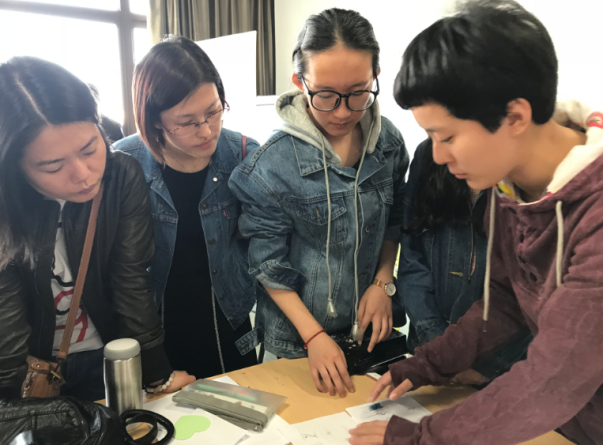 课程以小组为单位,六个人为以小组,共5组。从第一天的破冰游戏开始,到第二天的参观考察,头脑风暴,方案成型直至最后汇报完成,都以小组为单位来进行。在课程活动中大家一起吃、一起玩、一起思考、一起绘图,一起头脑风暴,一起建模、一起做展板。仅仅一周的时间大家在愉悦的氛围中出色的完成了