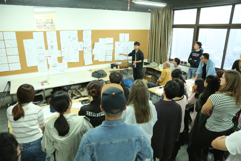 在课程开始几天,头脑风暴占领了主导,旨在用师生互动,快速的表达方式引导同学们打开思路,源源不断的涌现出许多优秀的想法,在课程中将近用掉了2500张A4纸,并从中选出有深入价值的方案进行再讨论,直至成型为一个完整的方案。