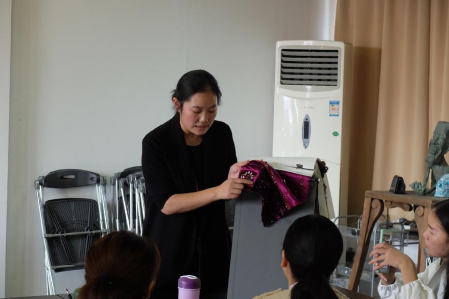 田玉晶老师通过多个品牌产品的展示,分享与其他企业之间的合作案例,帮助学员们更好地提炼贵州文化,用新兴技术来探索非遗文化的传承。通过分享“上下”这个品牌的设计,为同学们展示简洁而不失品味、独特而富有传统韵味的设计,对于学员们有着极大的帮助(图二)。