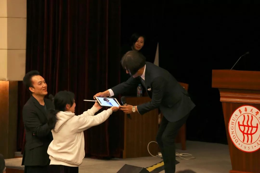 讲座的最后,同学们就专业发展趋势、如何将灵感转化成作品等问题积极向田山淳明先生提问,田山先生都一一详尽地进行了解答,并给出了专业建议。通过此次讲座,学生们领略了独特的田山风格,也学习到他在服装设计领域的创作经验和营销理念。