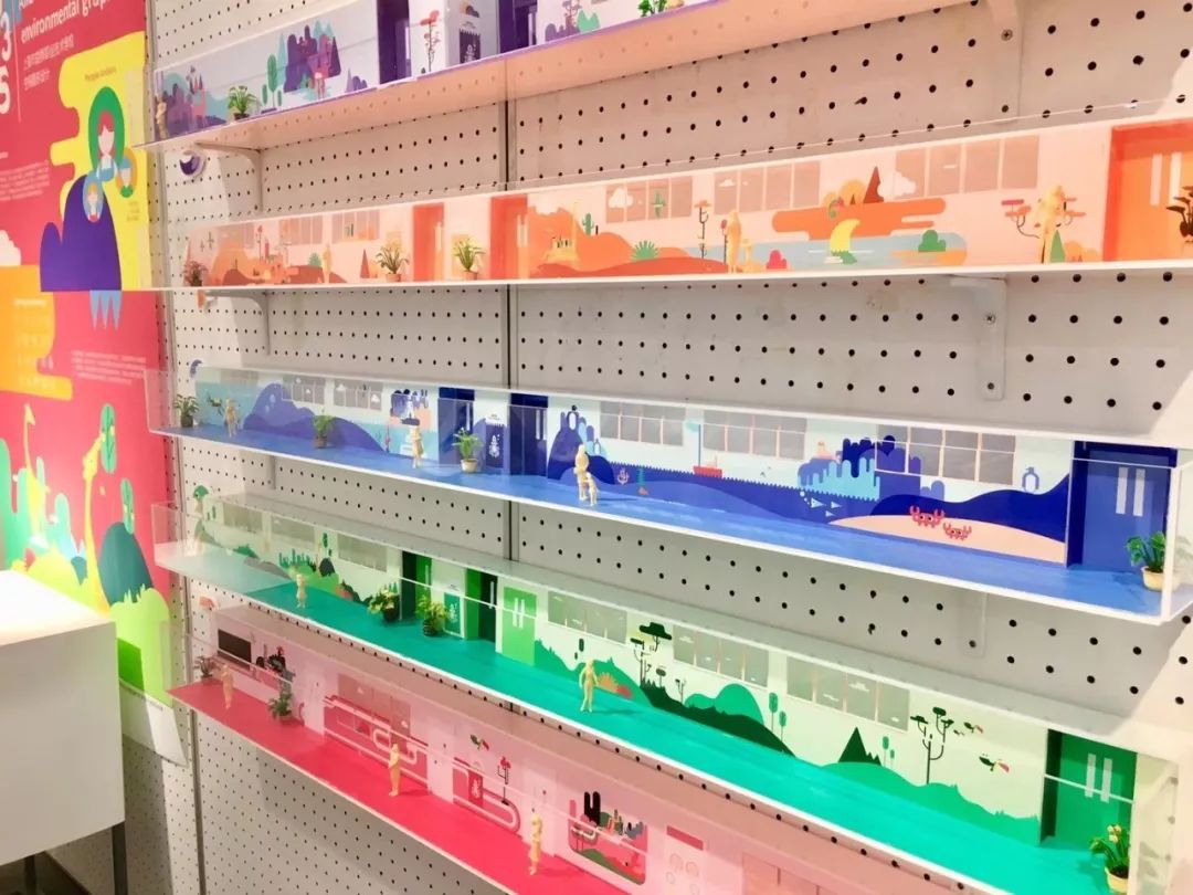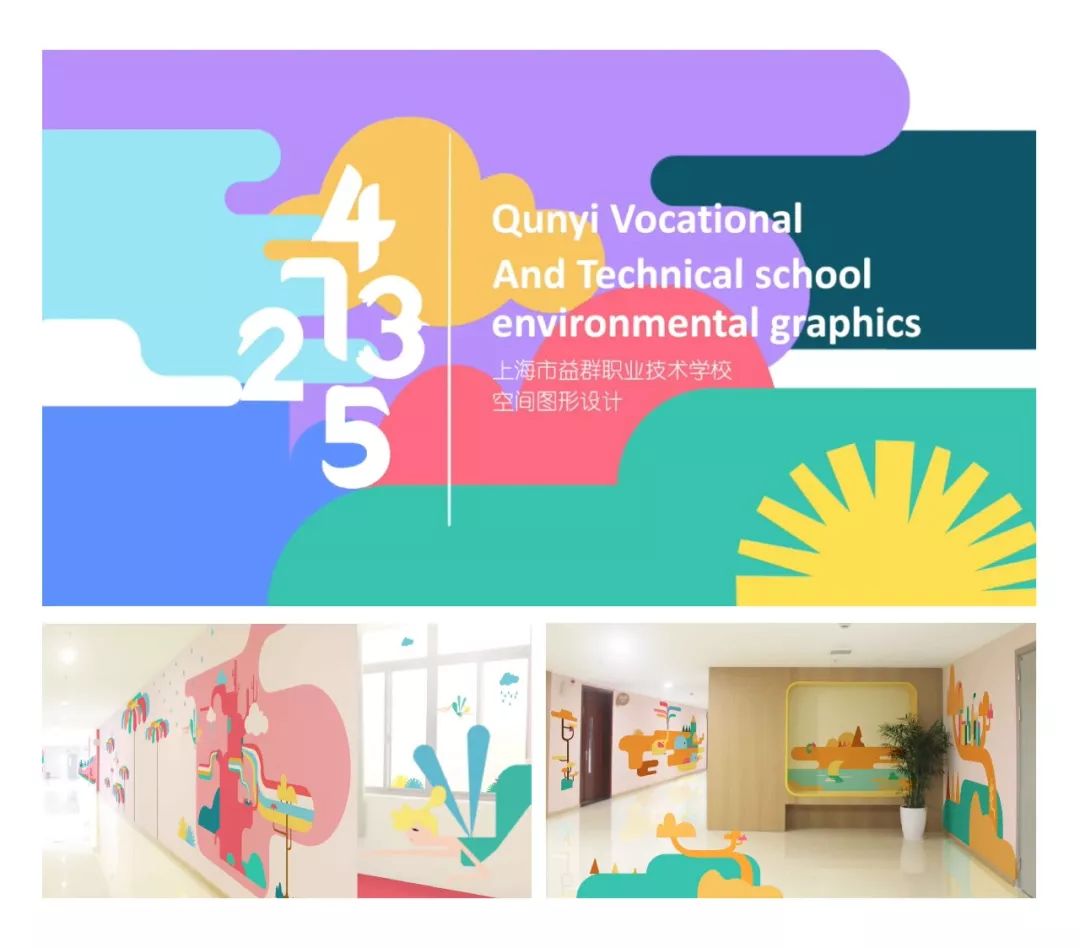 上海市群益职业学院的学前教育实训中心的环境图形设计。这栋教学楼的学生们多为女高中生,常常会有很多幼儿参与教学实训活动,为了给高中生一个生动有趣的学习环境,幼儿一个亲切自然的活动场所。楼层中的插画元素带有大自然的元素与景色,可爱的动物们将带领孩子们去到多彩神奇的幻想世界,用绮丽又亲切的环境的包围着学生们的成长。