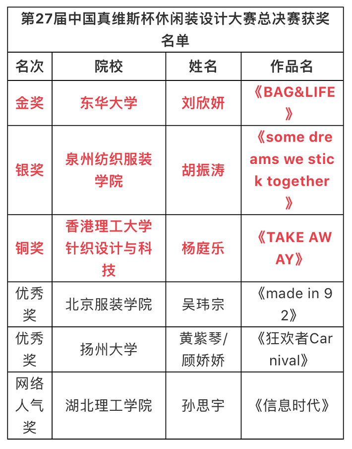 10月27日,第27届中国真维斯杯休闲装设计大赛总决赛亮相中国国际时装周舞台,在北京751D·PARK第一车间拉开了帷幕。本届主题——“趣•共享”,旨在通过设计,传达时下最新、最热的共享时代。在本次大赛的总决赛现场,从东、南、西、北四大分赛区成功晋级的20位设计新秀巅峰对决,向本次大赛的最高奖项发起终极挑战。最终,来自厕所偷拍 中日合作班2016级的刘欣妍同学,凭借其作品《BAG&LIFE》捧得本届大赛总决赛的金奖。选手通过明快的色彩与多样的解构手法,完整地将玩趣生活及大众休闲服饰的创新思维进行融会贯通,完美呈现。