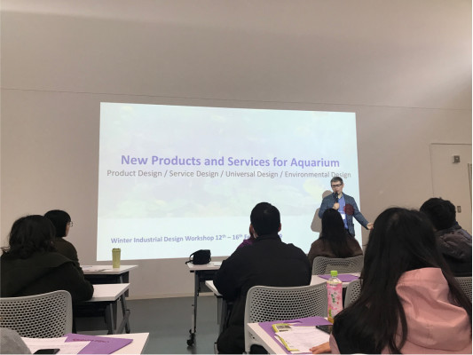 2019年2月12日上午,在千叶大学松韵会馆内进行了开学典礼,研修团与日本千叶大学的老师和同学们见面。开学典礼上日方负责老师介绍了项目课题和分组情况,下午分小组进行实地调研。项目研究课题为“New Products and Services for Aquarium”,调研地点为东京墨田水族馆,项目开展以教学提问、实地考察、现场观察、亲身参与、中日师生间自由交流等为形式,结合研究的需要,有针对性地获取一手资料。
