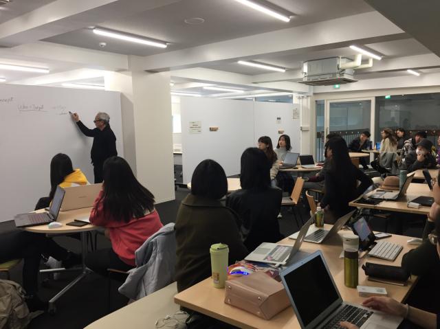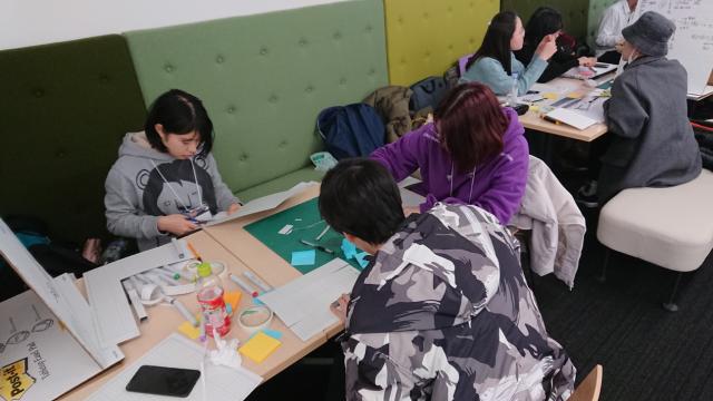 在进行完实地调研后,将开始为期四天的研修课程。分组采取三人一小组、中方学生和日方学生混合分组的形式,促进了中日同学间的交流。项目进行期间,ALGIRDAS老师和久米老师给出许多中肯的建议与意见,小组间合作积极,气氛融洽。