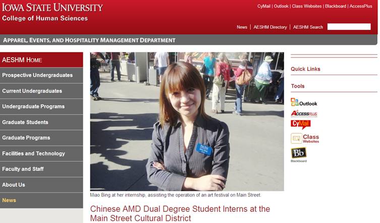 我校学生冰淼受到美国爱荷华州立大学网站专访报道